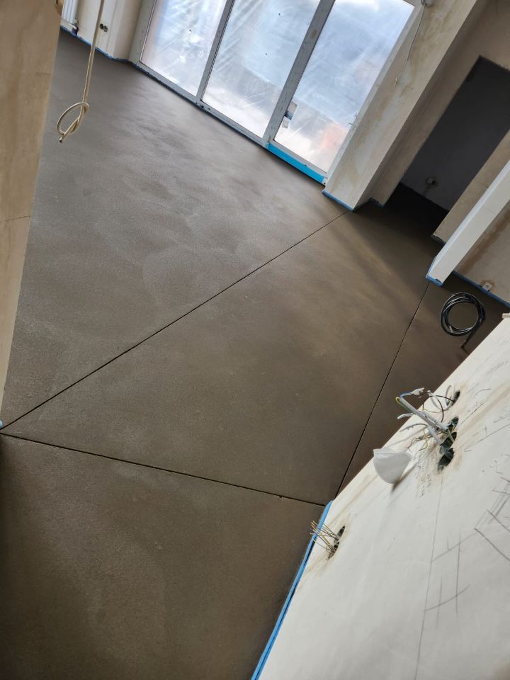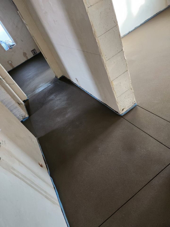 Мы также произвели нарезку деформационных швов, чтобы избежать появления трещин и обеспечить долговечность конструкции. В итоге получилась ровная и надёжная поверхность, полностью готовая к любым финишным покрытиям.